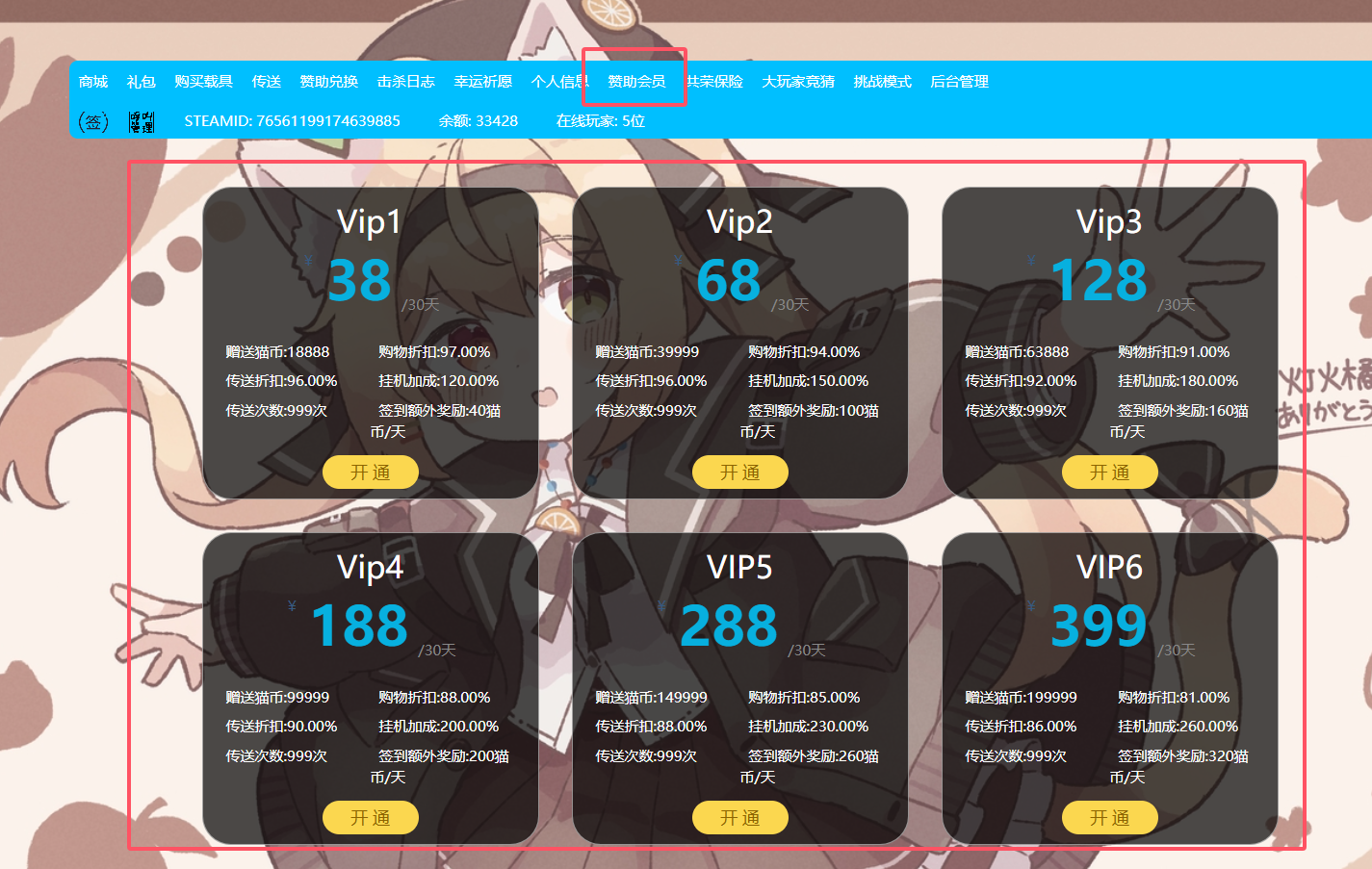 【赠送商城币】指开通成功后该玩家可获得多少商城币